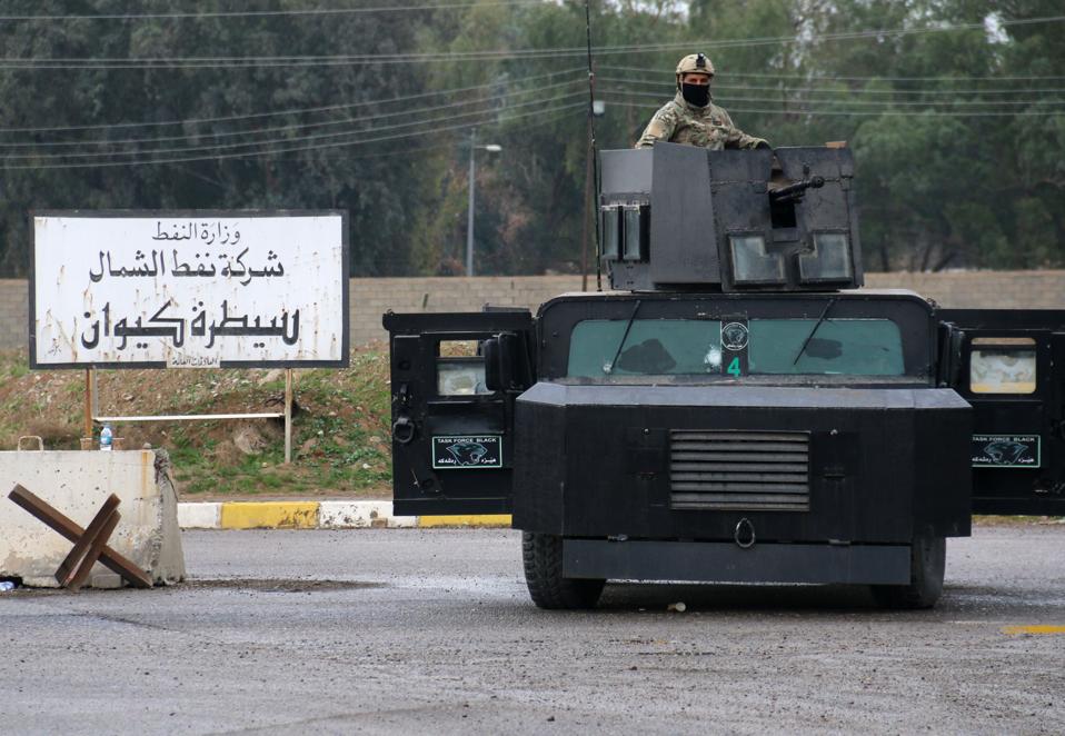| Masked Kurdish forces, loyal to the Patriotic Union of Kurdistan (PUK) party, stand guard at the North Oil Company headquarters in the northern Kurdish-controlled city of Kirkuk. (MARWAN IBRAHIM/AFP/Getty Images) |